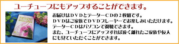 | こちらをクリックいただきましたらユーチューブでサンプルムービー001をご覧いただけます。 |